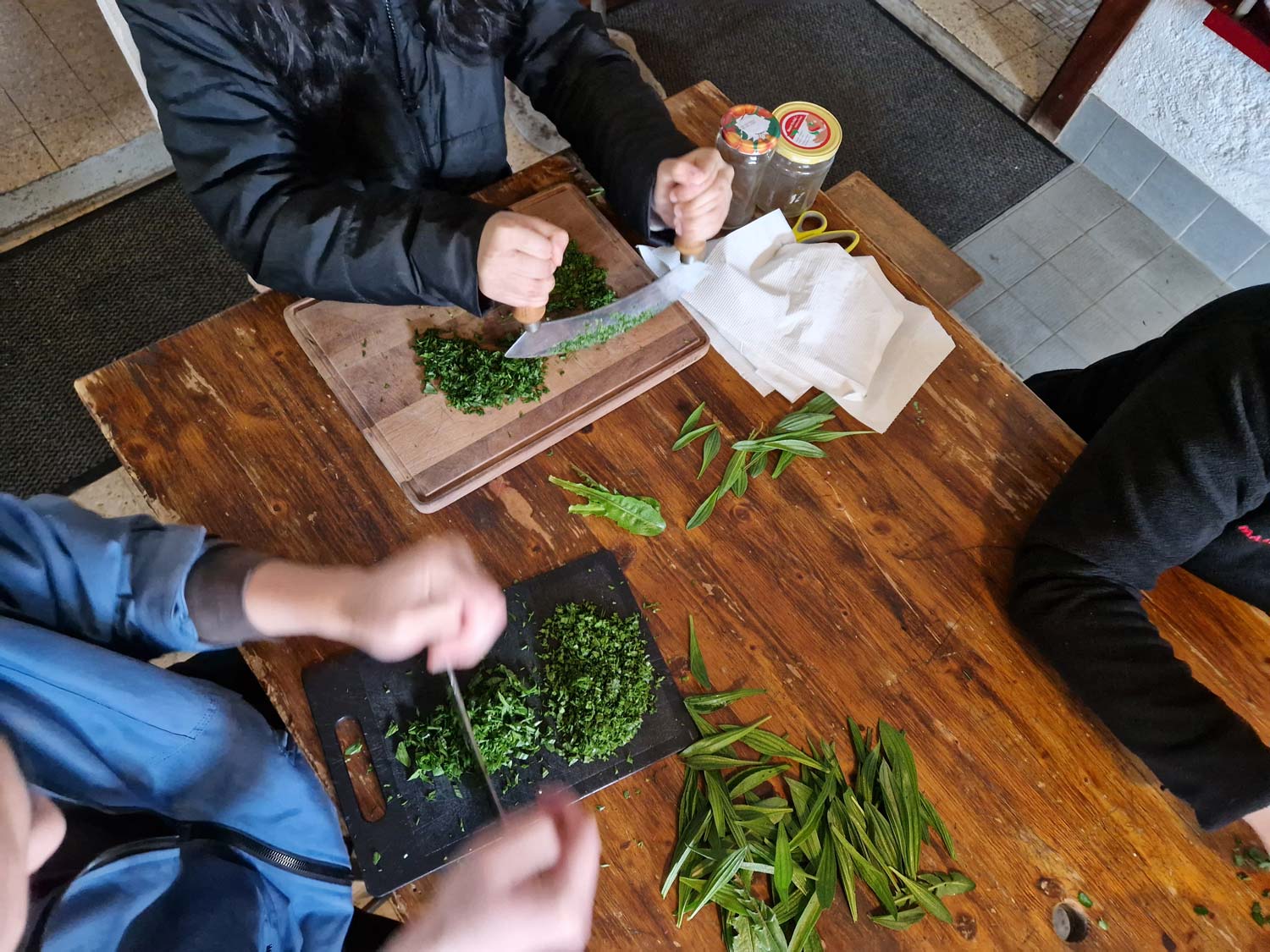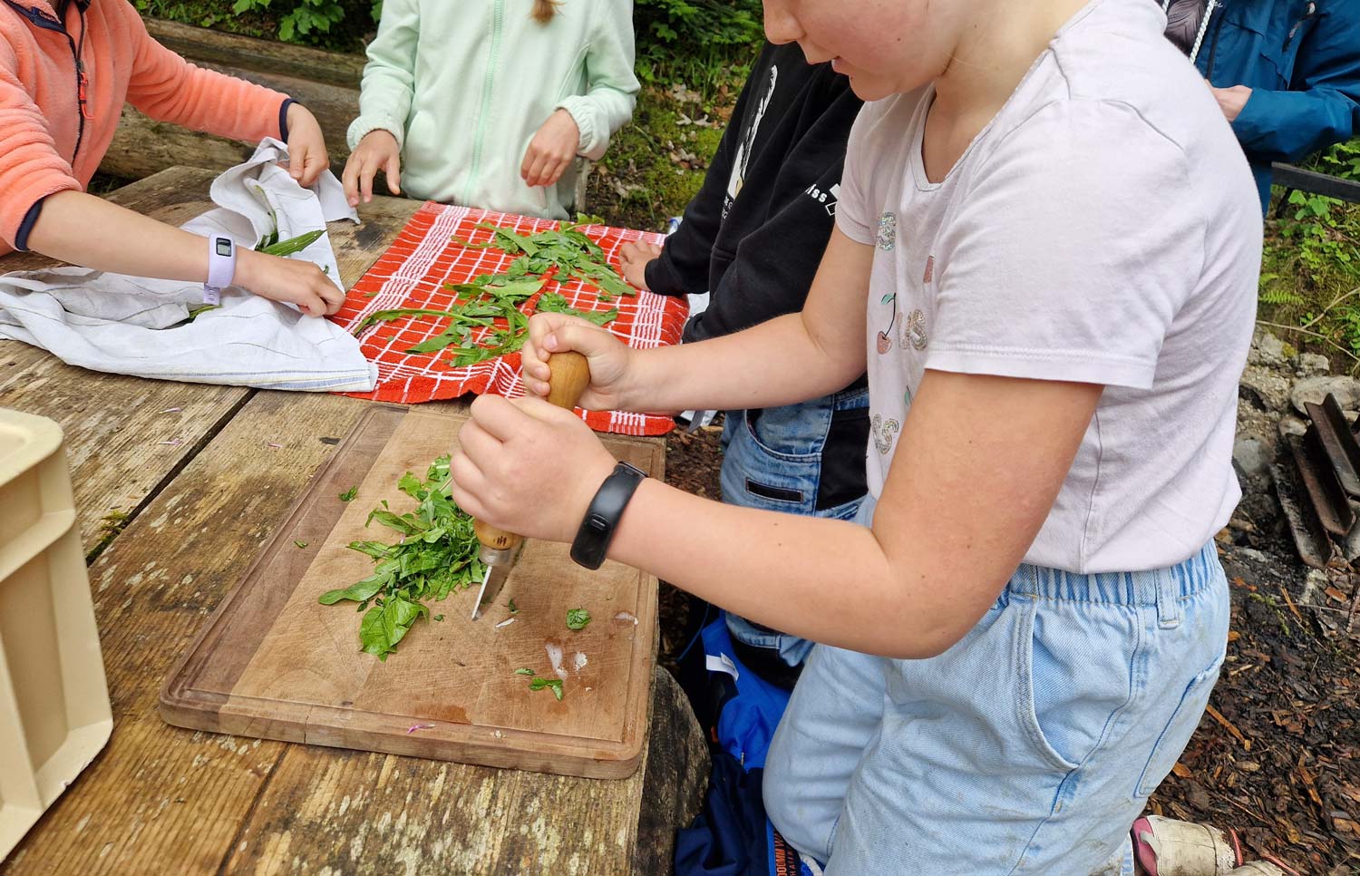 Découverte de plantes, champignons ou baies comestibles qui se trouvent dans les environs et de leur cuisine sur un feu de camp. Sensibilisation aux règles et aux dangers liés à la cueillette, cuisine en extérieur. L’animateur s’équipe d’ustensiles et d’eau pour laver et couper les plantes cueillies sur place, d’ustensiles pour griller la viande.
