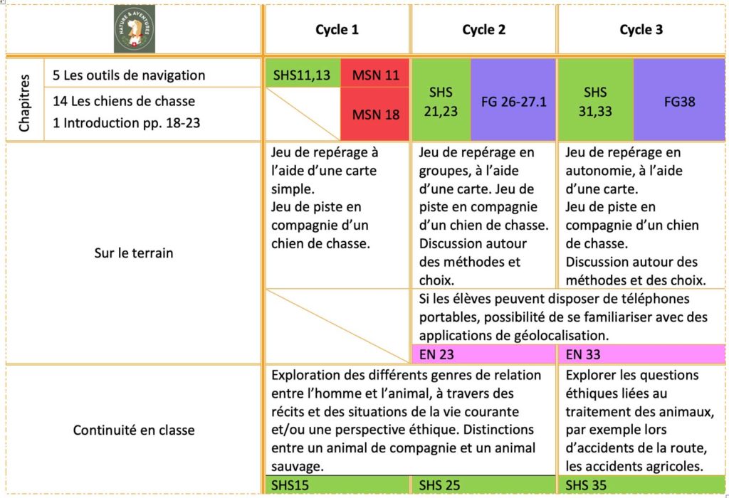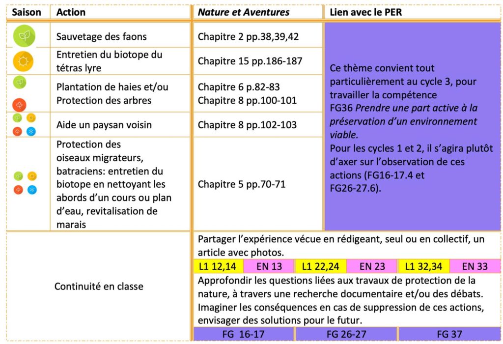 - Une fois le questionnaire envoyé et traité, une sélection conseillée des pages du livre Nature et Aventures pour étudier le thème choisi avec les élèves avant la sortie.